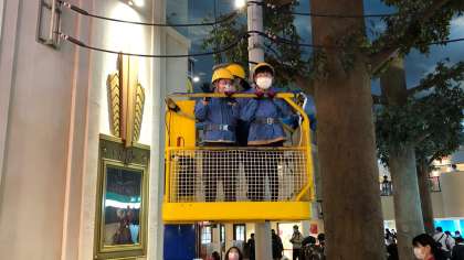 電力会社体験アクティビティです。リフトで結構高いところまであがり、電線等の保守点検体験です。