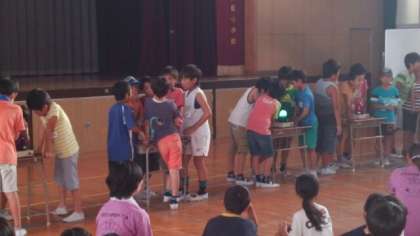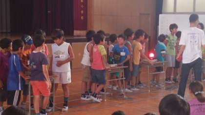 カレーの調理は無事終了しました。カレーが炊けるまでクイズ大会です。はや押し形式ですごく盛り上がっていました。