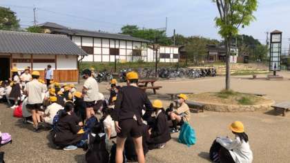 4月とは思えない気温の中、6年生は奈良県の明日香村に来ました。7時半に学校を出発して1時間半。近鉄飛鳥駅に到着。