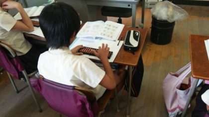 本日は、土曜授業の日です。午前中の3時間しっかり学習しました。そろばん普及会の方に来校いただき、4年生が「そろばん」の学習をしました。3年生の時にもそろばんの学習をしています。たしざんやひきざんを学習しました。最後に読み上げ算にも挑戦しました。