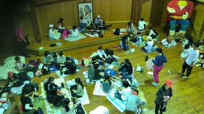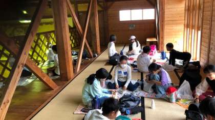 30分弱遊んだところで雨が降り始めたなので、屋根のあるところに避難し、お弁当タイムにしました。