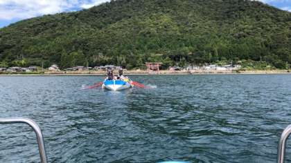2号艇が先に鳥居に向かってスパートをかけ始めました。