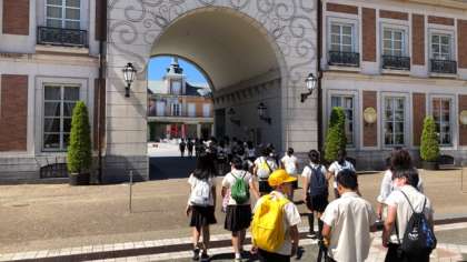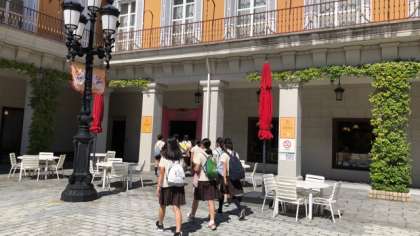 シベレス広場でクラス写真を撮り、昼食場所のレストランコメドルに向かいます。