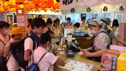 赤福が人気です。直営店なので、子どもたちのお財布に優しい2個入り250円を求めているようです。