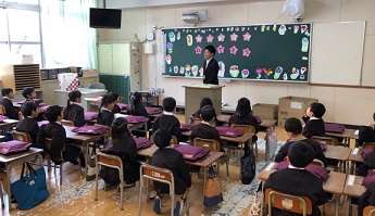 まっさらの標準服、少し緊張した顔つきの子もいましたが、元気に返事したり、先生の話を聞いたりしていました。