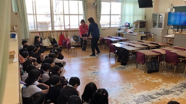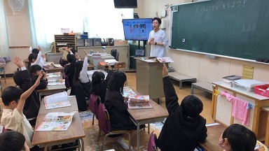それに備えて、教室掃除のときの机の運び方や、掃除の手順などを先生が実演して教えています。(写真上)