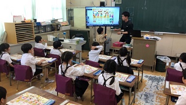 2組の様子です。算数で、数の読み方と数字をい一致させる(「1」はいち 「2」はに)学習を進めています。