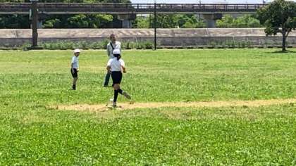 2組は缶蹴り、ではなくてゴムボール蹴りで遊んでいます。