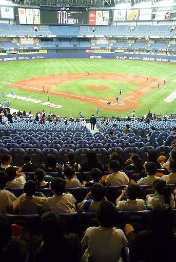 試合は、NTT西日本対四国銀行。見学児童を代表して、野田小学校の児童が始球式を行いました。スタンドからのみんなの声援を受けながら、見事なピッチングでした!試合を最後まで見ることはできませんでしたが、選手のプレイに驚いたり感動したりしていました。