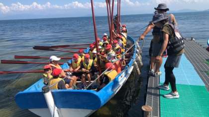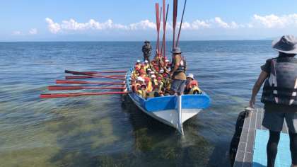 午後のプログラムが始まりました。今度は3組がカッター漕艇。