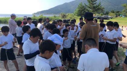 まずは、リーダーから「本結び」のやり方を教えてもらっています。