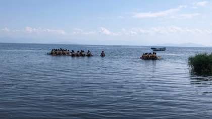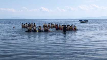 子どもたちの大歓声に、カッターの上に泊まって獲物を狙っていた鷺も、びっくりして飛び立っていってしまいました。(笑)