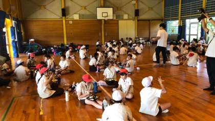 湖畔で自然を最後に肌で感じながら食べるつもりでしたが、あまりに暑いので、体育館で食べさせてもらうことにしました。
