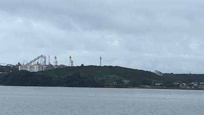 まもなく到着です。スペイン村が見えてきました。現在は曇天ですが、残念ながら降雨の予報です。昼食中に雨雲が通り過ぎてくれたら良いのですが。