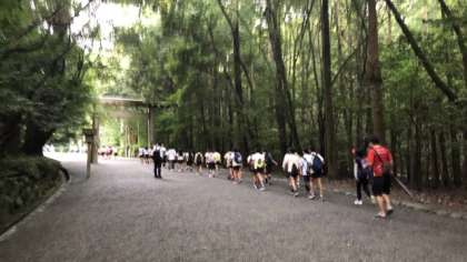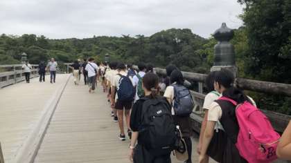 宇治橋を渡って、正宮に向かいます。土曜日ですが、朝イチなので比較的空いています。