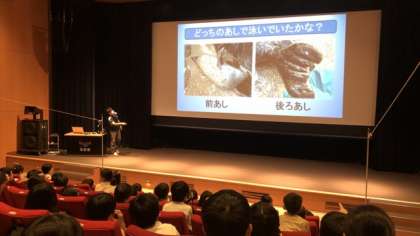 アザラシとアシカの泳ぎ方の違いや、流線型の体の形が速く泳げるように適応しているのか教えていただきました。