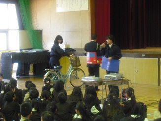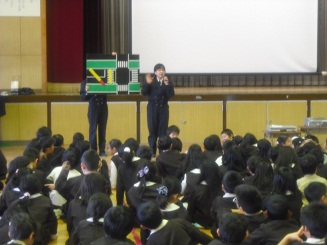 12月8日(火)に警察の方に来ていただいて交通安全指導を行っていただきました。今年は、交通事故多発警報が警察署から発令されるほど交通事故が多発しているそうです。そのなかでも自転車事故がとても多いそうです。今日は、具体的に交通ルールをたくさん学びました。明日からではなく今日の放課後から守ることを皆と約束しました。是非、この機会にご家庭でもお子様と交通安全についてお話していただければと思います。