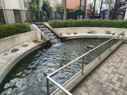 のだしょうがっこうには、げんかんの そばに いけが あります。