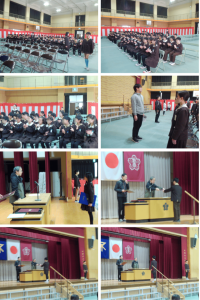 続いて、新2年生の「お祝い動画」、そして、最後に野田小学校の校歌の合唱を音声で流しました。