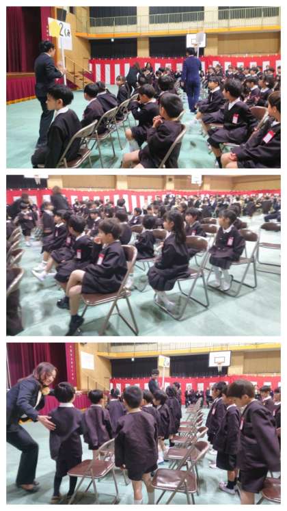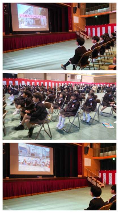 ぴかぴかの新1年生たちは、少し緊張しながらも、笑顔いっぱい元気いっぱい、落ち着いて話を聞くことができていました。