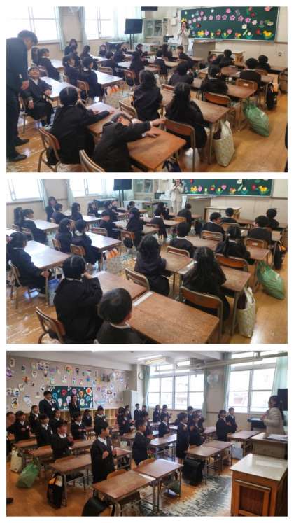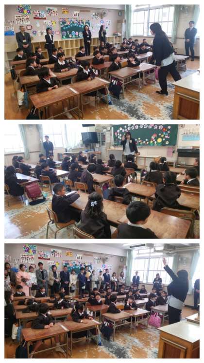 教室では担任が子どもたちの名前を呼んだり、明日から始まる学校生活についてのいろいろな話をしたりしました。