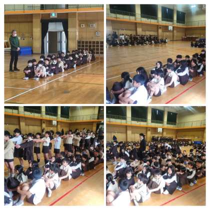 いちばん最初に、5年生が講堂に来て、姿勢よく静かに待っていました。
