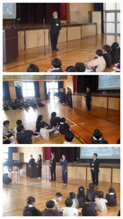 まず、4月に着任した校長が子どもたちにあいさつをしました。