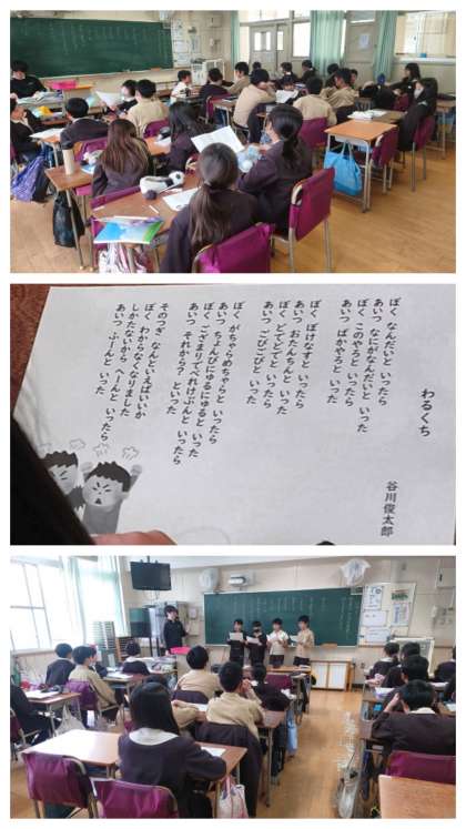 国語科の時間は、谷川俊太郎の詩「わるくち」を読み方を工夫して音読しました。