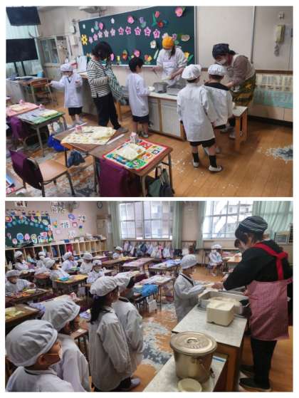 1年生が給食の準備をしています。