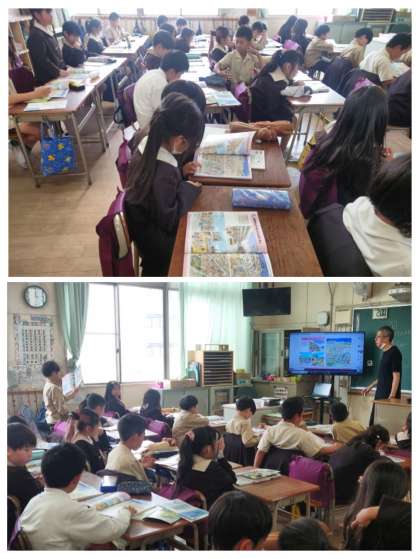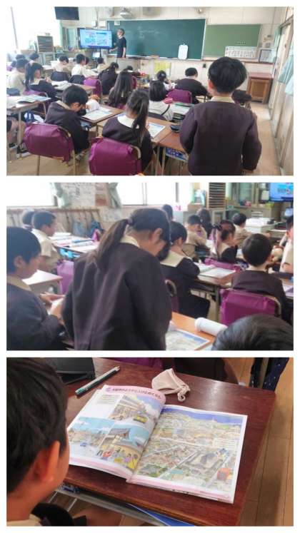 社会科の時間は、これから通学路のまわりにはどんな場所があるのか、また、自分たちのまちにはどこに何があるのか調べていきます。