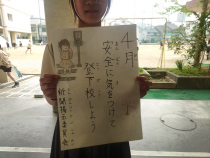 新聞掲示委員会は、毎月のめあてを書いて各学級に配っています。