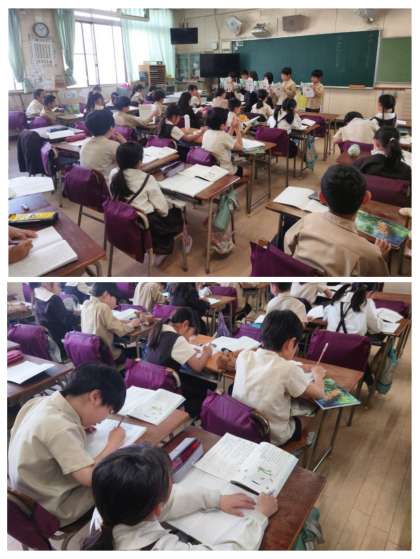 国語科の時間は、物語文「すいせんのラッパ」の学習をしています。