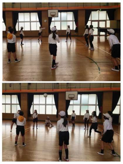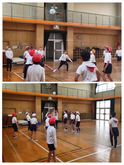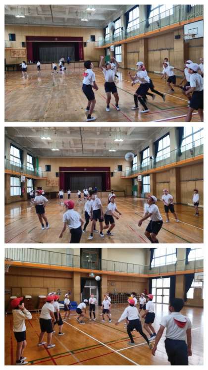 体育科の時間は、グループでソフトバレーボールの練習をしました。
