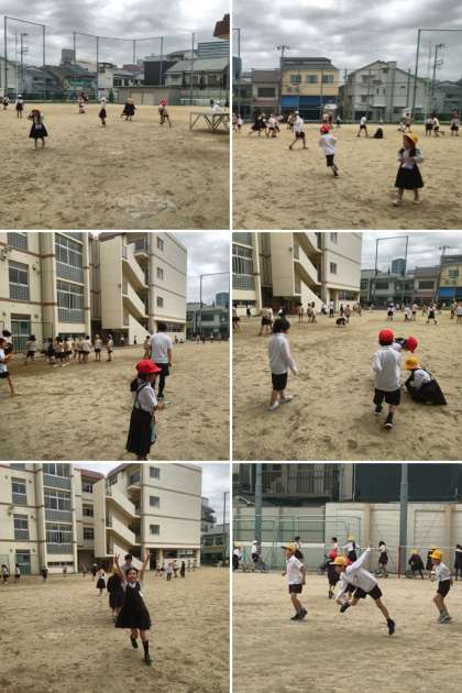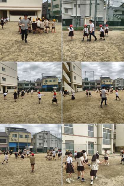 担任も運動場に出て、子どもたちと一緒に遊んでいます。