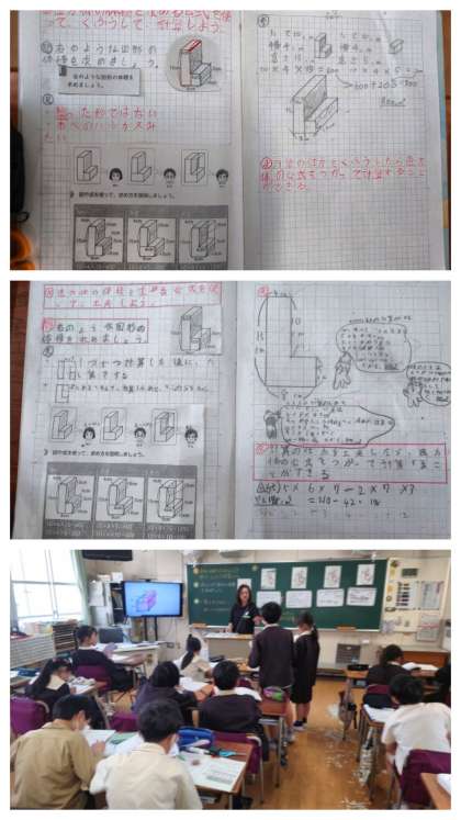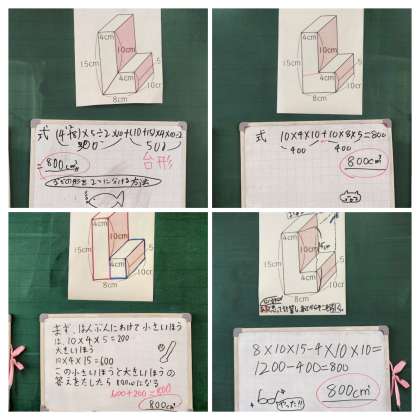 今日は、直方体の体積を求める公式を使って、複雑な形の立体の体積を求める方法を考えました。
