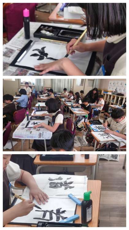 書写の時間は、毛筆の練習をしています。