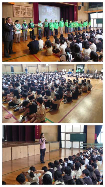 朝会では、「見守り隊」のご代表の方からごあいさつの言葉をいただきました。