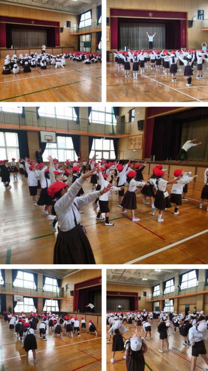 2年生の「はじめの言葉」のあと、1・2年生のみんなで「ラジオ体操」をしました。