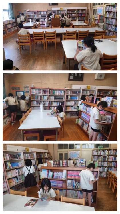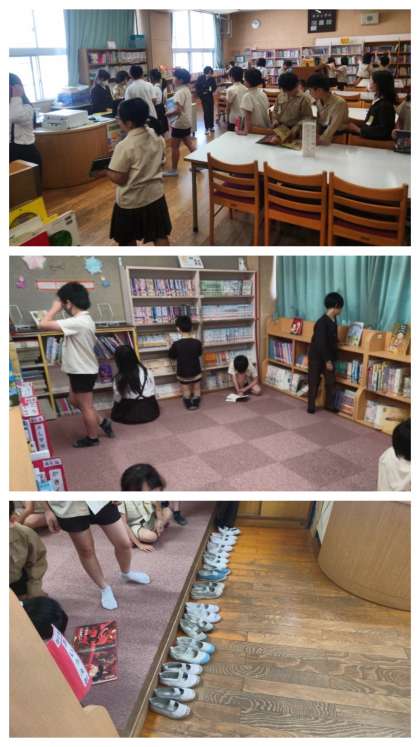 子どもたちが、自分で選んだ本を静かに読んでいます。