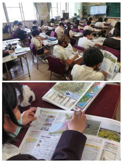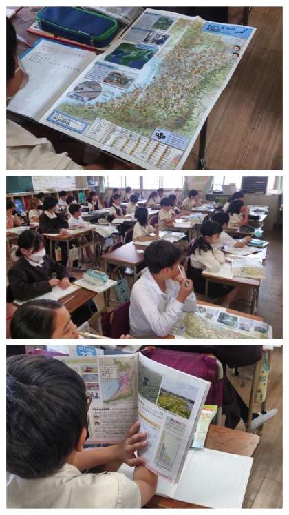 社会科の時間は、大阪府内でどんな農業が行われているのか、地図などで調べました。