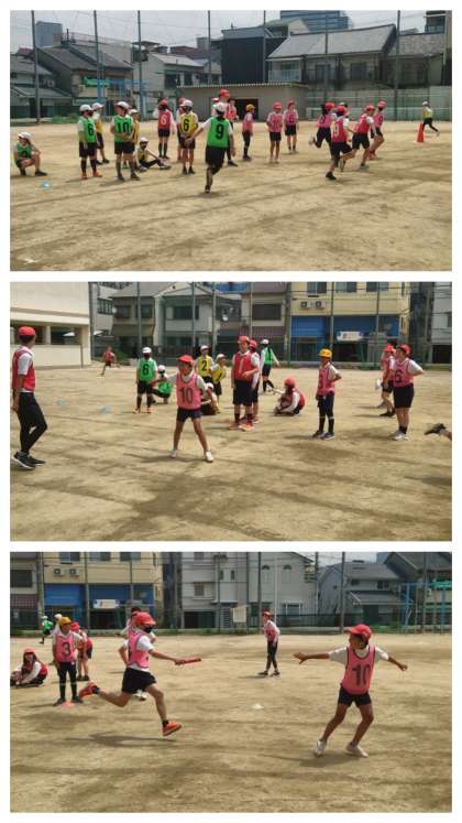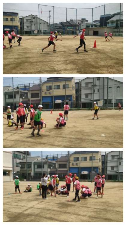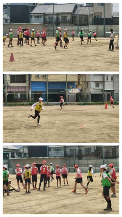体育科の時間は、運動場でリレーの学習をしました。