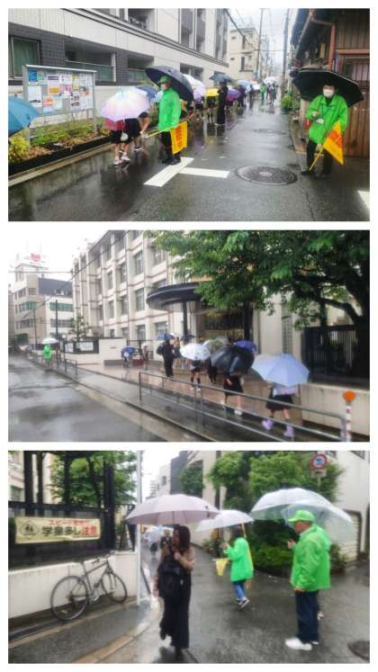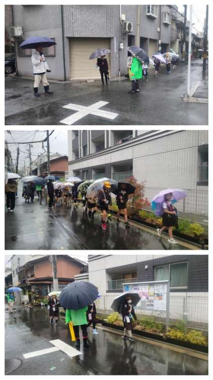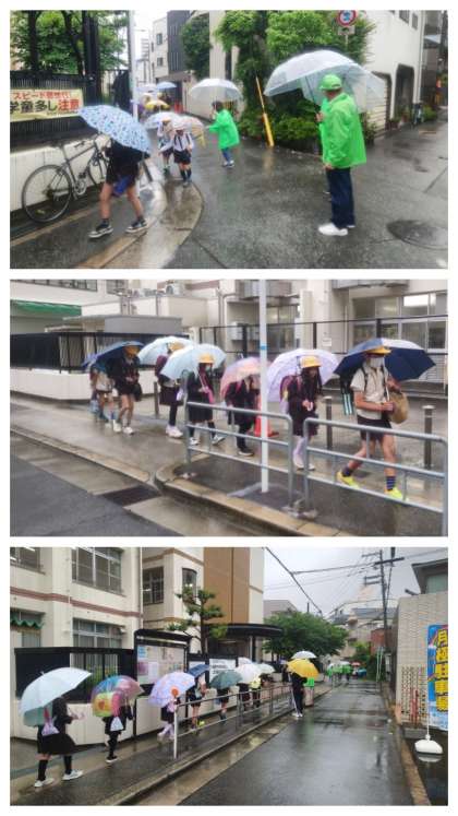 たくさんの保護者の方に雨が降る中、登校班に付き添っていただいたり、通学路で見守っていただいたり、可能な範囲でご協力いただきました。