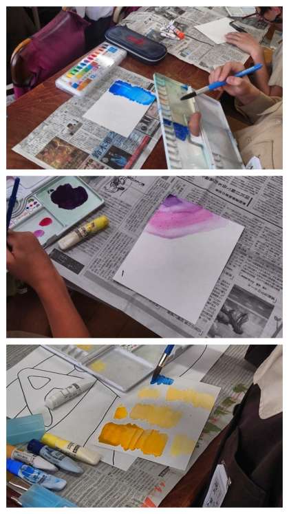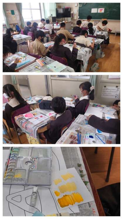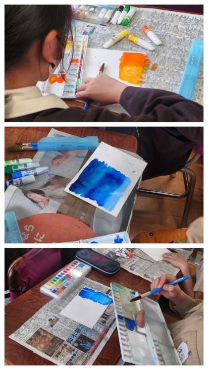 図画工作科の時間は、絵の具を使って「グラデーション」の描き方を練習しました。