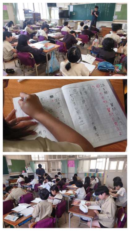 今日は、担任の話を聞き取って、メモを取ったり質問したりする練習をしました。