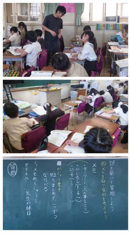 分からないことがないか気を付けながら話を聞いてメモを取り、質問を考えることがめあてです。