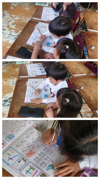 国語科の時間には、毎日少しずつひらがなを学習していきます。