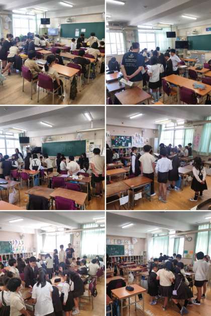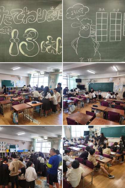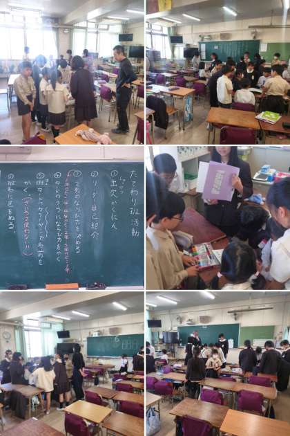2時間目に、全校児童がたてわり班の教室に分かれて、メンバーの顔合わせをしました。