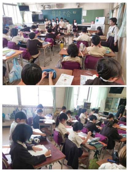 国語科の時間は、「こわれた千の楽器」の音読発表会をしました。
