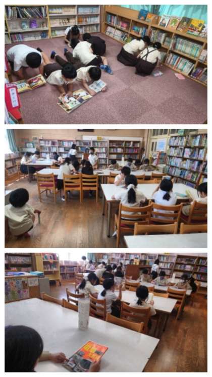 子どもたちが、自分で選んだ本を静かに読んでいます。