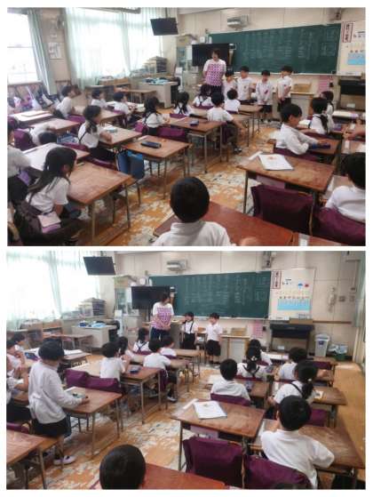 がくしゅうがかり、こくばんかかり、ほけんがかり、ゆうびんがかり、としょがかりなど、自分のしたい仕事を選んで立候補します。